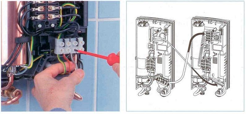 Электронное управление. При протекании воды через устройство, сигнал от датчика протока поступает на электронный блок управления (см. рис. 4). Тот в свою очередь дает команду на включение нагревательного элемента. И чем больше проток, тем больше нагревательных элементов включается, что и позволяет значительно сэкономить электроэнергию. |