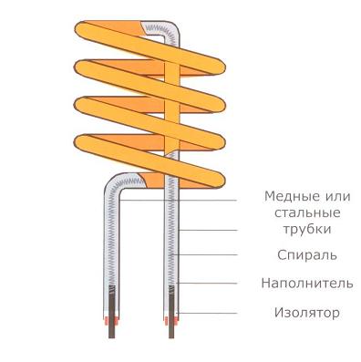 ТЭН. Трубчатый электрический нагреватель состоит из медной или стальной трубки, в которую концентрично запрессована нагревательная спираль. В качестве теплового проводника и, одновременно, диэлектриком между спиралью и стенкой трубки, служит специальный наполнитель на основе оксида магния (магнезий). ТЭНы мало чувствительны к воздушным пробкам, обладают высоким КПД и продолжительным сроком эксплуатации. |