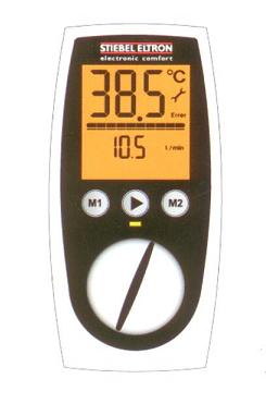 Пульт управления FFB 1 Устройство состоит из приемника и передатчика (пульта), устанавливаемого в удобном для пользователя месте (см. рис. 11).Устройство позволяет управлять приборами серии DHE и DEL на расстоянии до 25 метров и выполняет те же функции, что и расположенные на приборе сенсорная панель с жидкокристаллическим дисплеем. Дополнительно к устройству можно подключить до 6 пультов FFB 2. Пульт защищен от попадания влаги при погружении в воду. В комплект поставки не входит. |