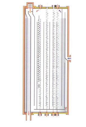 В приборах серии DHB, DHB-E, DEL, и DHE нагревательные элементы уложены в специальные каналы, выполненные из пластика, чтобы в процессе эксплуатации они не касались медного корпуса колбы. Это обеспечивает 100% защиту от поражения электротоком в случае обрыва спирали (см. рис. 7). |
