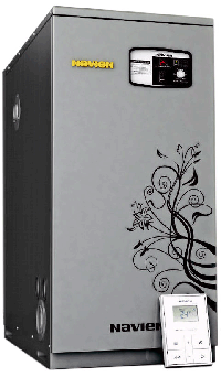 Напольные газовые котлы NAVIEN серии KDB GA предназначены для отопления и нагрева воды для бытовых нужд. Отличаются низким уровнем шума и высокой эффективностью работы! Оснащены дутьевыми горелками закрытого типа, рассекателями – катализаторами полного сгорания топлива. Автоматическое управление горелкой и циркуляционным насосом обеспечивает поддержание установленной температуры воды и воздуха в помещении. Выносной пульт управления позволяет устанавливать температуру воздуха в помещении и контролировать работу котла дистанционно. Приоритет ГВС – за счет временного отключения насоса отопления при включении горячей воды. Минимальный вес и габариты, низкий уровень шума (48 децибел), а также современный дизайн позволяют устанавливать котлы в любом месте и вписываться в любой интерьер. Коаксиальный (труба в трубе) дымоход изолирует процессы подачи воздуха в камеру сгорания и отвода отработанных газов, что способствует сохранению влажности и кислорода в жилых помещениях, попутно повышая КПД на 1,5-2 %. Все котлы оснащены мощной системой безопасности, устойчиво работают при перепадах напряжения и низком давлении газа, самостоятельно запускаются при отключениях света и газа. Весь процесс сборки происходит исключительно на собственных заводах компании в Корее в соответствии со строжайшим контролем качества, соответствующим ISO 9001. Характеристики GA-35K Silver/Gold: